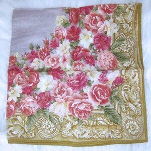 This pretty Dior small scarf/neckerchief/large handkerchief features roses with an elegant gold border. Lightweight cotton, perfect for a neckerchief or bag scarf.