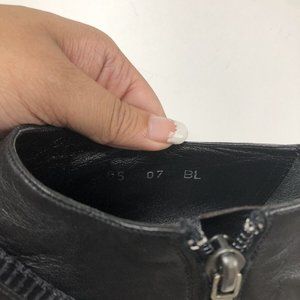 Buttery soft leather, fair condition, moderate wear at soles, slight creasing, blemishes on heel + vamp