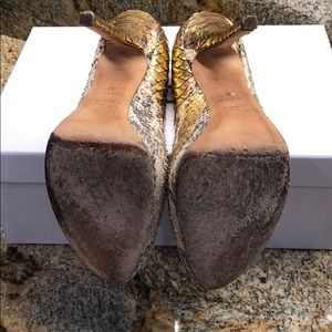 Size 38 color is a beautiful snake print with gold foil metallic, black, grey, cream. Eye catching and comfortable.