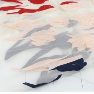 Dior oversized sheer silk chiffon embroidered daffodil flower shawl w/ box