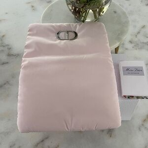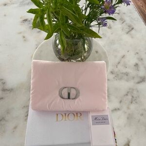 Dior pink clutch makeup pouch with Miss Dior perfume