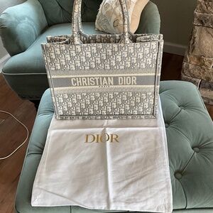 Beautiful Dior medium tote in gray and white. Comes with dust bag. Gently used. Happy Shopping!