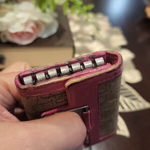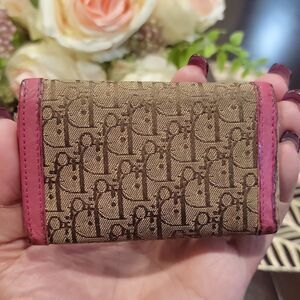 Elevate your style with this chic Dior wallet. Featuring a stunning pink and brown design, this accessory is perfect for any occasion. The elegant Dior branding adds a touch of luxury to your everyday essentials.