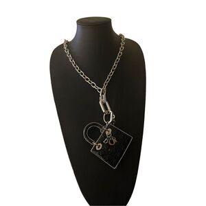 Authentic Dior purse shaped Pendant (permanently closed - will not open) on a 18inch Silver plated NON-BRAND chain. Some wear & tear on front of pendant (shown in pictures)- still a great piece. Original & Unique. #Dior #Authentic