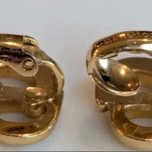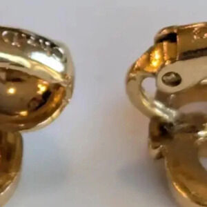 These Dior earrings are gorgeous and in excellent condition. They have the CD initials on them in a gold tone. They are clip on earrings that are 1/2 of an inch wide and are 3/8 of an inch long. Go see what I mean by looking at the pictures