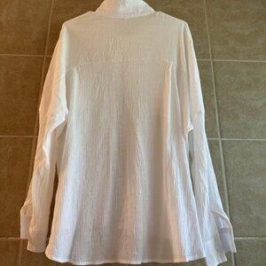 Diosun Women’s White Ivory Long Sleeve Button-Down Shirt Casual 2X