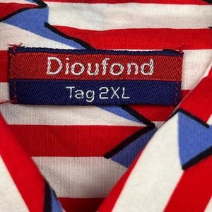 Dioufond Women's Long Sleeve Red Blue White Cotton Shirt Sz 2XL Pre-Owned