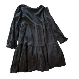 The Dip Black Sundress is a perfect blend of casual style and comfort, featuring a scoop neckline and long bishop sleeves. Its tiered design adds a playful touch, making it ideal for relaxed outings. Crafted with attention to detail, this dress ensures a flowy and elegant silhouette. Pit to pit 19", length 36"