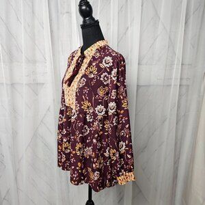 Dip Plum Orange Floral Boho Fairy Festival Peasant Blouse Size L