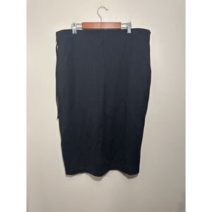 Dip Ponte Knit Faux Wrap Skirt XL Stretch Side Tie Pencil Minimalist Black