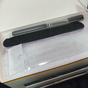 Comes with the colors blue, silver, and light pink. Never opened. Comes with brush and nail file.