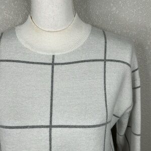 Dip White & Gray Window Pane Long Sleeve Mock Neck Sweater Size XS