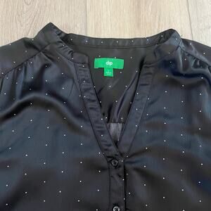 Dip Women’s Black Polka Dot V-Neck Blouse Size L