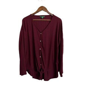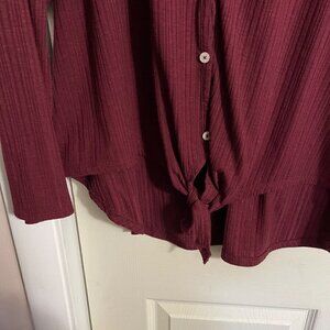 Dip Womens Burgundy Ribbed Long Sleeve Button Front Tie Blouse Size 1X