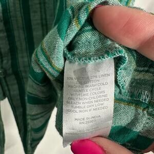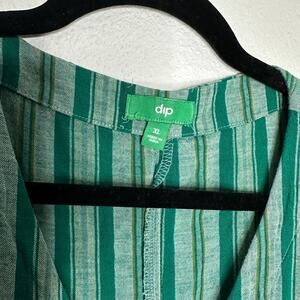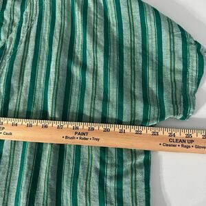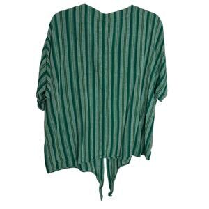 Dip Women's Green Striped Blouse XL Linen Blend Button Down Tie Front Casual