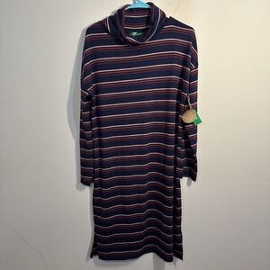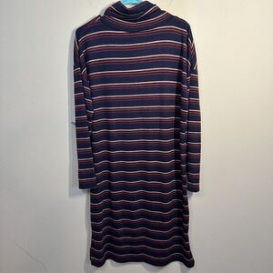Dip Women's Ribbed Turtleneck Sweater Dress Navy‎ Pink Striped Long Sleeve NEW
