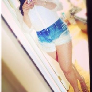 Very cute handmade dipped dyed denim shorts. Smaller at the top to hug your waist. Comfortable and true to size!