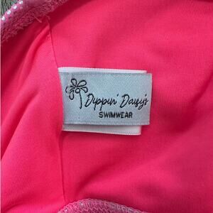 Shine bright in this Dippin Daisy hot pink metallic bandeau swim top, size Medium. Features a sleek strapless design with shimmering fabric that catches the light perfectly for a bold beach or poolside look. Comfortable stretch fit with supportive band. Pairs easily with your favorite bikini bottoms for a chic summer set.