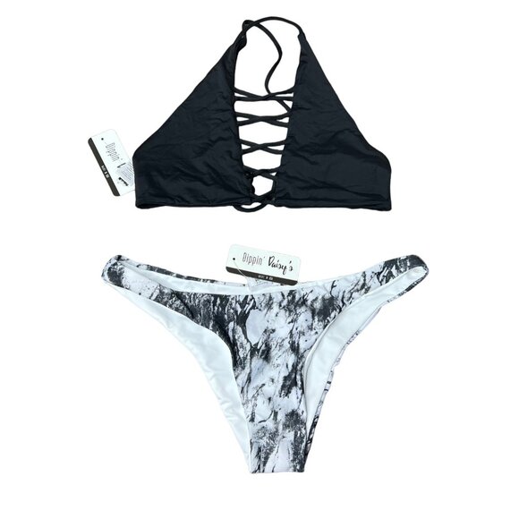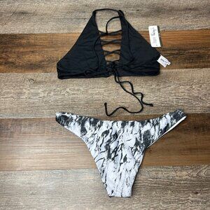 Dippin Daisy's Bikini 2 Piece Set Size L Mix & Match Marble Caged Top Bottom NWT