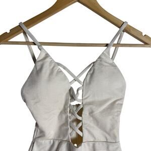 Dippin’ Daisy’s Bliss White Lattice Plunge One Piece Swimsuit Size XS