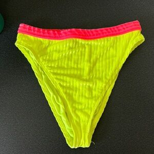 Bold yellow bikini bottom with a vibrant pink accent. Ideal for a standout beach style.