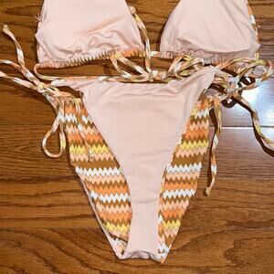 Dippin Daisys Mia Tie Side Cheeky Halter Zig Zag Stripe Bikini Set Size Large