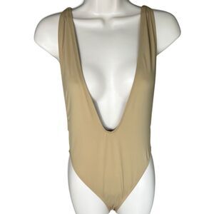 Dippin’ Daisy’s Sexy Beige Euphoria High Cut V Plunge One Piece Swimsuit