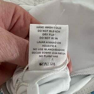 - Contrast solid white waistband