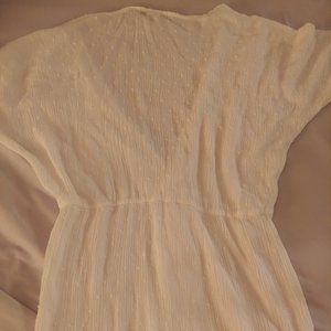 Comfortable beach/swim suit cover-up that can be doubled as casual vacation dress as well. Took photos with and without flash. Dress is white with polka dots. Size small. Only worn once.