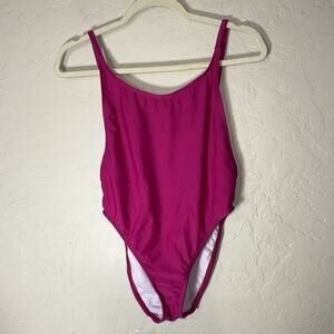 Dippin daisys high cut open back high neck one piece pink swimsuit. Cheeky back. Scoop back. Size small