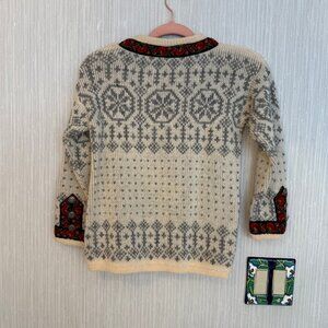 Could be a child's, it measures 16" across the chest, pit to pit. Gorgeous, heavy wool with embroidery and metal closures. Excellent condition.