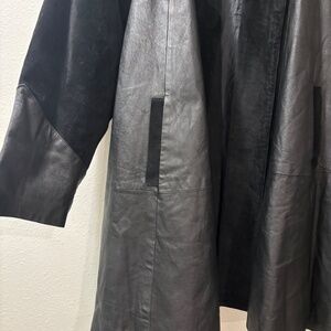 The Direct Action Dany New York Women's Black Leather Suede Jacket in size L is a stylish and versatile choice for women looking for a classic trench coat. Made from high-quality leather with a polyester lining, this long jacket features a button closure, collared neckline, and convenient pockets. Perfect for travel, casual outings, or business meetings, this vintage-inspired piece is ideal for the winter, fall, and spring seasons. The black color, solid pattern, and medium brand add a timeless touch to this wardrobe essential.