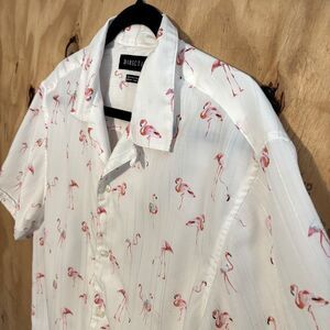 Direction Flamingo Print White Button Up Short Sleeve Shirt Sz XL