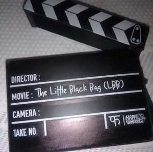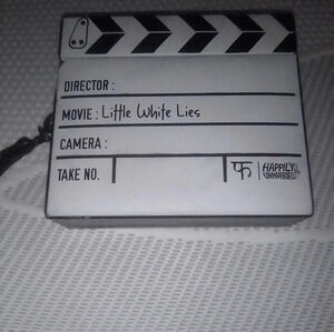 Box bag in shape and presentation of a film directors "Clapper". With similar slots/printing of a original Clapper in black and white this is a fun and creative and playfull piece of fashion and convenience all married into one. Large Clutch/boxbag type design yet strap can be added for crossbody wear. (Strap sold separately,just look into same store)