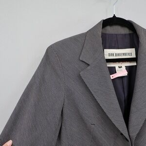Keywords: Dirk Bikkembergs, blazer, herringbone, womens blazer, size 46, gray blazer, striped blazer, shoulder pads, designer blazer, italian fashion, classic blazer, tailored blazer