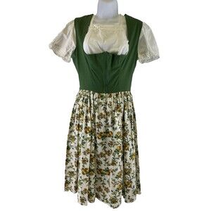 Dirndl Dress Green Yellow Floral Blouse Dress Apron Handmade Womens Small