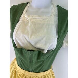 Dirndl Dress Green Yellow Floral Blouse Dress Apron Handmade Womens Small.