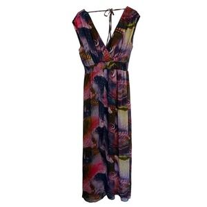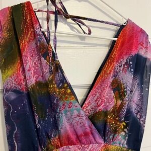 Dirty Ballerina v-neck maxi dress gemstone print red, pink, blue M