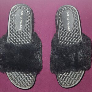 Dirty Laundry Black Fuzzy Slides With Platform Heels Size 7.5
