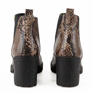 Dirty Laundry, Lita, snakeskin boots, faux snake print, Chelsea boot, lug sole, block heel, ankle boots, women’s size 6, brown boots, reptile print, fall boots, trendy boots, DL Boots, platform Chelsea, python, kind snake, faux leather