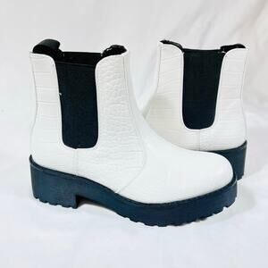 Dirty Laundry Montana Boots 6.5 White Crocodile Print Black Platform Combat Used