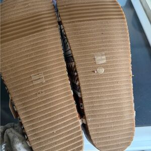 Stylish clogs with intricate patterns. Features a secure buckle strap. Comfortable and trendy design.