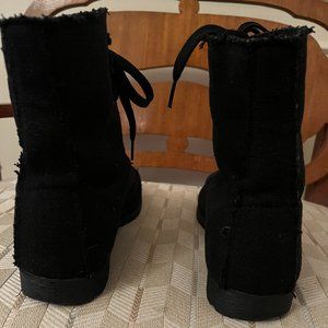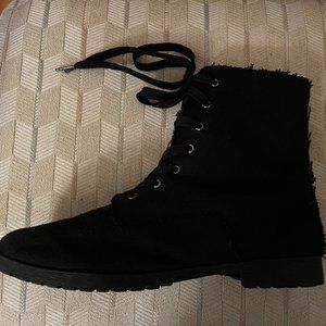 Dirty Laundry Raw Edge Hem Black Canvas Ankle Boots/Booties