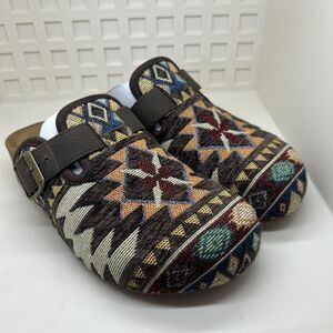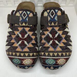 Notes: Southwestern/Aztec-inspired pattern; comfortable slip-on clog style