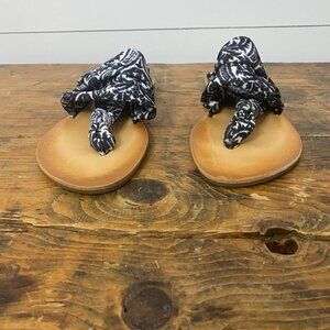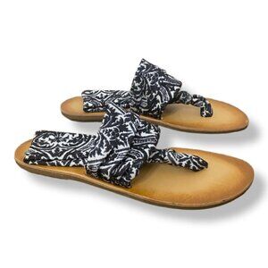 Dirty Laundry Tribal Print Stretchy Slingback Sarong Thong Sandals in Black & White, Size 8