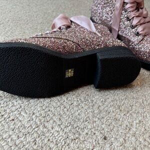 Dirty Laundry pink/multi glitter combat boots with ribbon laces, size 8. New without tags.