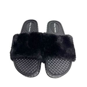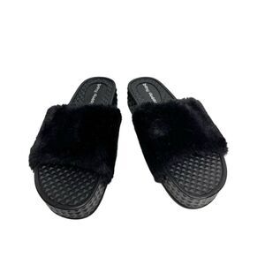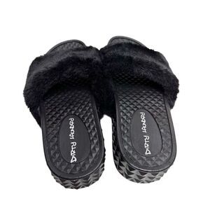 Dirty Laundry Slide Shoes Size 9 Black Open Toe Sonny Fur Sandals