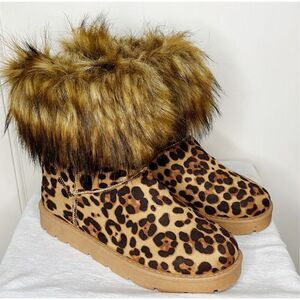 Dirty Laundry Stay Strong Faux Fur Cuff Boot Leopard Size 8 New