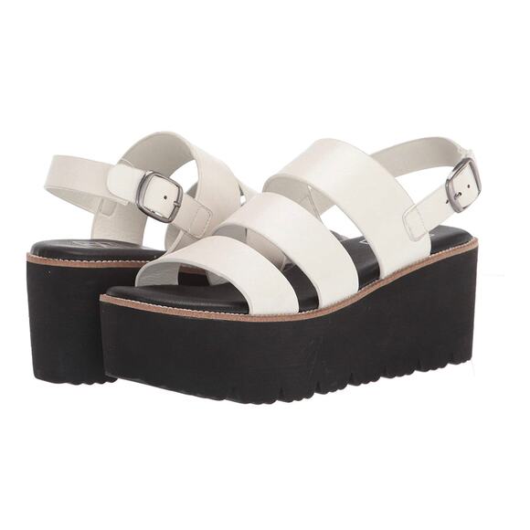 Dirty Laundry Triple Strap Flatform Sandal white Sz 8.5