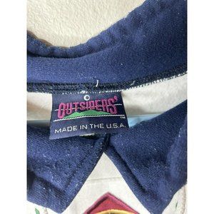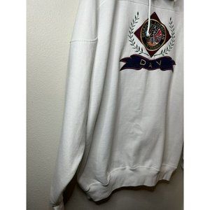 vintage Disabled American Veterans sweater by Outsiders is a must-have for any 90s enthusiast. The white cotton blend sweatshirt features an embroidered logo and blue collared neckline with drawstring closure. The XL-Tall size fits a range of body types, and the classic fit makes it a comfortable choice for all seasons. Machine washable for easy care, this unisex pullover is perfect for walking or any other activity. Made in the United States, it's a high-quality piece from the Outsiders product line. Approximate measurements are Pit to pit 24.5 In and length is 29. Item is pre owned has normal wear and tear. Please look at all pictures to get a better idea of current condition of this item. Ask questions if needed!